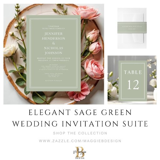 Elegant Sage Green Formal Wedding Invitation SuiteDesignt von Maggie B Design