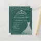 Modern Glam Emerald Green Diamond Tiara Prinzessin Gown Dress Glitzer Confetti Sparkle 15. Geburtstag Quinceanera Einladung