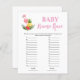 Machen Sie sich mit unserem günstigen Flamingo Baby Name Race Baby Shower Game fertig, eine angenehme Aktivität für Ihre Feier! In diesem Spiel werden die Gäste gegen die Uhr wetteifern, um so viele Babynamen durch das Alphabet in der vorgegebenen Zeit zu bekommen. Der mit den meisten Namen gewinnt einen süßen Preis! Dieses Spiel mit charmanten Flamingos, Ananas und tropischen Details ergänzt Ihre Babydusche-Festlichkeiten um eine Touch Süße. Es eignet sich hervorragend, um die Gäste unterhalten und verlobt zu behielte, während Sie die Ankunft Ihres Kleinen feiern. Egal, ob Sie eine kleine Ansammlung oder ein großes Party beherbergen, jeder wird sich an diesem spannenden und unterhaltsamen Spiel freuen. Mit unserem Budget Flamingo Baby Name Race Baby Shower Game können Sie Ihre Feier mit einer Touch Spaß und Lachen bereichern und gleichzeitig dauerhafte Erinnerungen mit Ihren Lieben schaffen. Lass, das Rennen zu beginnen!