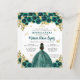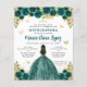 Moderne Niedliche Blumen Smaragdgrüne Prinzessin Gown Tiara Crown Dress Butterfly Gold Glitzer Sparkle 15. Geburtstag Quinceanera Einladung