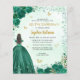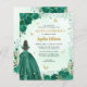 Floral Emerald Green Princess Gown Dress Glitzer Sparkle Tiara Crown Butterfly 15. Geburtstag Quinceanera Einladung