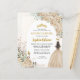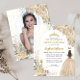 Floral Light Champagne Gold Prinzessin Gown Dress Glitzer Sparkle Tiara Crown Butterfly 15. Geburtstag Quinceanera Einladung