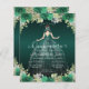 Floral Emerald Green Princess Gown Dress Glitzer Sparkle 15. Geburtstag Quinceanera Bilinguale Spanische Einladung