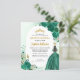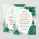 Floral Emerald Green Princess Gown Dress Glitzer Sparkle Tiara Crown Butterfly 15. Geburtstag BILINGUAL Spanisch Quinceanera Einladung