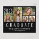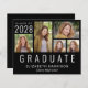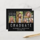 Eine preisgünstige Ankündigung für den Schwarzen Abschluss mit einer 5-Bild-Foto-Collage und "Graduate", die unten in großen, weißen Hauptstädte geschrieben sind. Fügen Sie das Unterrichtsjahr, den Namen und die Schule oder die Universität in der einfachen weißen Typografie hinzu.
