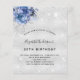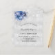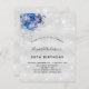 Für einen eleganten 18. Geburtstag (oder jedes Alter). Ein stilvolles Imitat silbermetallisch anmutender Hintergrund. Dekoriert mit Imitaten Glitzer Staub und blauen Blumen. Personalisieren und fügen Sie Namen, Alter und Party Details hinzu. Der Name wird mit einem handgeschriebenen Stilskript geschrieben