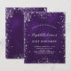 Eine moderne, stilvolle und glamouröse Einladung für eine 21. Geburtstagsfeier (oder jedes Alter). Ein tiefer lila Hintergrund mit Imitaten silberner Glitzer Staub. Die lila Farbe ist ungleichmäßig. Der Name ist mit einem modernen handgeschriebenen Stilskript geschrieben. Personalisieren Sie Ihre Party-Daten und fügen Sie sie hinzu.
