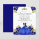 Glam Blue Dress Floral Watercolor 15. Quinceañera Einladung