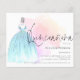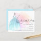 Glam Dress Blue Quinceanera. Eine preisgünstige SMALLER 4.5" x 5.6" Alternative. Erhältlich in einem SEMI GLOSS 110lb CARD STOCK oder einem SATIN FINISH 80lb THINNER PAPIERSTOCK. Umschläge sind optional. Ein zeitgenössisches Quinceanera-Design mit einer Abbildung der Rückseite eines Mädchens in einem schönen blauen Kugelkrug. Der Haupt-Header ist in einem Set-Skript und leicht personalisieren Sie die Erholung des Textes auf Ihre Daten. Auf der Rückseite befindet sich auch ein blauer Hintergrund.
