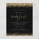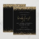 Gold Glitzer Black 21. Party Einladung. Eine preisgünstige SMALLER 4.5" x 5.6" Alternative. Erhältlich in einem SEMI GLOSS 110lb CARD STOCK oder einem SATIN FINISH 80lb THINNER PAPIERSTOCK. Umschläge sind optional. Elegante goldene Imitate Glitzer Konfetti Ränder sind oben und unten und auch auf der Rückseite auf einem klassischen schwarzen Hintergrund. Twenty First ist Set in einem modernen Stil der Handschrift. Personalisieren Sie einfach die Erholung des Textes auf Ihren eigenen.