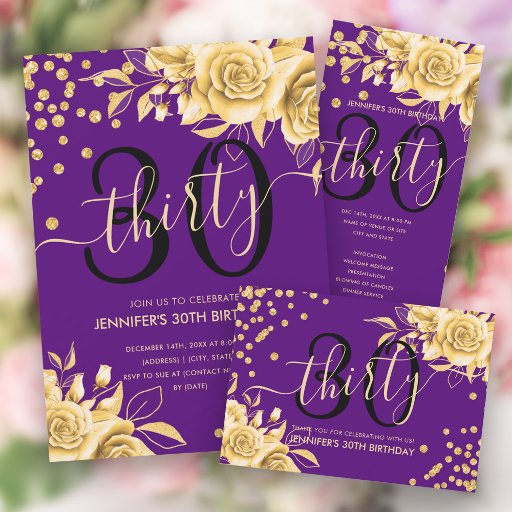 Gold Purple Floral Glitter 30th Birthday SetDesignt von Marta Burton