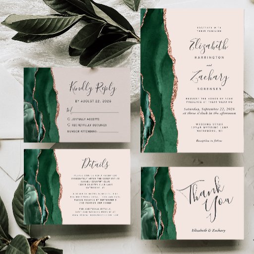 Emerald Green Rose Gold Agate Blush Wedding SuiteDesignt von Akhates Designs
