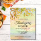 Mit dieser Einladung laden Sie Familie und Freunde zu Ihrem Erntedank Dinner ein. Es ist mit Aquarellblättern aus Herbstblättern in Herbstfarben auf einem farbenfrohen Hintergrund dekoriert. Passen Sie diese Einladung mit Ihrem Namen und Ihren Details an. Weil wir unsere Kunstwerke erstellen, werden Sie dieses exakte Bild von anderen Designern nicht finden. Original Wasserfarbe © Michele Davies.