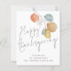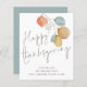 Künstlerische Blätter Skript glückliche Thanksgiving-Karte. Ein Preis SMALLER 4,5" x 5,6" Alternative in einem SEMI-GLOSS 110 lb CARD STOCK, ähnlich der Dicke einer Postkarte. Die Umschläge sind etwas größer als die Kartengröße. Trendy Watercolor Blätter in den Herbstbraun, Gelb und Dusty Blau sind rechts, mit trendiger Handschrift Stil Set Typografie für Happy Thanksgiving. Personalisieren Sie einfach Ihre Namen und Gruß am Ende. Ein koordinierendes Blau ist auf der Rückseite.