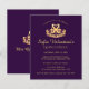 Budget Lila Quinceanera Einladung mit einem minimalistischen Look und einem Gold Tiara Design.
