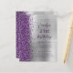 Die links Kulisse dieser modernen Geburtstagsfeier bietet einen lila Imitat-Glitzer-Rahmen. Der anpassbare Text kombiniert lila Skript und sans Serif-Schriftart auf einem silbernen Imitat gebürsteten Metall Hintergrund. Die Rückseite weist ein passendes Design auf.