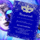 Für eine elegante Masquerade, Quinceañera, 15. Geburtstag. Ein königlich blauer Hintergrund. Dekoriert mit Imitaten silbernen Glitzer Staub und eine Maskerade Maske. Personalisieren und fügen Sie Namen, Alter und Party Details hinzu. Der Name wird mit einem handgeschriebenen Stilskript geschrieben