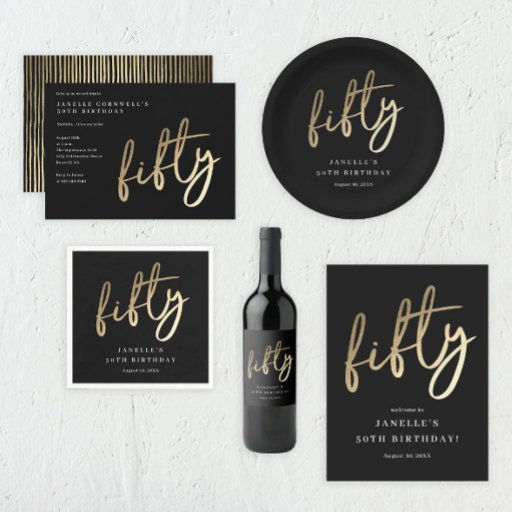 Modern Script Fifty Black and Gold 50th BirthdayDesignt von Stacey Meacham