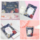 In unserer "Movie Night Kid's Birthday" Kollektion finden Sie einen dunkelblauen Hintergrund mit einer weißen Cloud-Details in der Mitte, wo alle Ihre Geburtstagsfeierinformationen geschrieben sind. Aquarellbilder verschiedener Film- und Kinothemen werden in der gesamten Kollektion gezeigt: Kinositze, Kinokarten, Popcorn etc. Karo in unserem Shop für weitere Artikel aus dieser Kollektion.