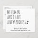 Mein Mensch und ich haben eine neue Adresse! Lass Deinem besten Freund, dass er mit dieser niedlichen und lustigen Liebling-Bewegungs-Karte bekannt geben kann. Personalisieren Sie die Namen des Hundes oder der Katze und Ihre neue Adresse. Diese preisgünstigen Hundeschilder Postkarten müssen als übergroße Postkarten verschickt werden, sodass es zu normalen Portogebühren kommen kann, aber sie brauchen keinen Umschlag oder eine Rücksendeanschrift. Diese Hundeankündigung ist ein Muss für alle Hundefreunde, Katzen-Liebhaber und alle Haustiere mit Pfoten! COPYRIGHT © 2020 Judy Burrows, Black Dog Art - Alle Rechte vorbehalten. Budget Neue Adresse Wir haben verschoben Haustier bewegen Postkarte