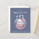 Eine hübsche, rosa Handgemalte Weihnachtsbaumkugel, die mit einem staubblauen Band verbunden ist, bildet den Rahmen für den Gruß vor unserer budgetnahen Ankündigungskarte: "Frohe Weihnachten von meiner neuen Zuhause." Im Folgenden wird ein zusätzlicher Kontext für die Adressenänderung mit Beispieltext hinzugefügt, der Ihren Namen und Ihre neue Adresse in serifenloser Schrift in einem hellrosa, vom Ornament selbst gezeichnet, anzeigt. Text im Ball ist ein knackiger, lesbarer schwarzer Text. Alle Texte können auf der Personalisierungsvorlage leicht überarbeitet werden.