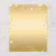 Eine moderne, stilvolle und glamouröse Einladung zu einer Quinceañera, 15. Geburtstagsfeier. Weißer Hintergrund mit Imitaten goldener Glitzer Staub, goldenes Kleid und Rose, Blumen. Der Name ist mit einem modernen handgeschriebenen Stilskript geschrieben. Personalisieren Sie Ihre Party-Daten und fügen Sie sie hinzu. Zurück: Imitate goldener Hintergrund und Glitzer.