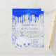 Ein Imitat silber aussehender Hintergrund. Dekoriert mit königsblauer Tropffarbe, Glitzern. Personalisieren und fügen Sie einen Namen und Party-Details hinzu. Der Name wird mit einem handgeschriebenen Stilskript geschrieben.