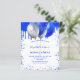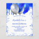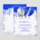 Ein weißer Hintergrund. Dekoriert mit königsblauen Imitaten Glitzer Tropfen malen tropfende Aussehen, Glitzern. Königlich blaue und Imitate silberne Ballons. Personalisieren und fügen Sie einen Namen und Party-Details hinzu. Der Name wird mit einem handgeschriebenen Stilskript geschrieben.