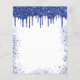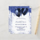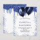 Eine mädchenhafte Geburtstagsfeier. vorne: Ein weißer Hintergrund. Dekoriert mit marineblauen Imitaten Glitzer Tropfen, Farbe tropfende Aussehen und Ballons. Personalisieren und fügen Sie einen Namen und Party-Details hinzu. Der Name wird mit einem handgeschriebenen Stilskript geschrieben.