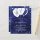 Eine moderne, stilvolle und glamouröse Einladung zu einer Quinceañera, 15. Geburtstagsfeier. Marineblau, mit Imitaten verziert mit Glitzern aus silberfarbenem Glitzer und weißen Ballons. Die blaue Farbe ist ungleichmäßig. Personalisieren Sie Ihren Namen und Ihre Party-Daten und fügen Sie diese hinzu.