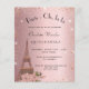Eine moderne, stilvolle und glamouröse Einladung für eine Quinceañera, 15. Geburtstagsfeier, Pariser Themenabend. Ein rot-rosa metallischer Hintergrund mit Rose vergoldeten Imitaten Glitzer Glitzern und Eiffelturm mit einigen Blume. Der Name ist mit einem modernen handgeschriebenen Stilskript geschrieben. Personalisieren Sie Ihre Party-Daten und fügen Sie sie hinzu.