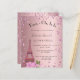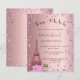 Eine moderne, stilvolle und glamouröse Einladung für eine Quinceañera, 15. Geburtstagsfeier, Pariser Themenabend. Ein rot-rosa metallischer Hintergrund mit rosa glitzernden Herzen und dem Eiffelturm mit einigen Blume. Der Name ist mit einem modernen handgeschriebenen Stilskript geschrieben. Personalisieren Sie Ihre Party-Daten und fügen Sie sie hinzu.
