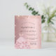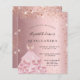 Eine moderne, stilvolle und glamouröse Einladung zu einer Quinceañera, 15. Geburtstagsfeier. Rosa metallischer Hintergrund mit Glitzer aus Rose, vergoldeten Imitaten und rosa Ballgown. Der Name ist mit einem modernen handgeschriebenen Stilskript geschrieben. Personalisieren Sie Ihre Party-Daten und fügen Sie sie hinzu.