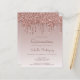 Diese trendige Einladung quinceañera bietet eine funkelnd Rose Gold Imitate Glitzer Tropfen Rand und ombre Hintergrund. Die Worte "Quinceañera" und der Name des Ehrengast erscheinen in lässiger Schrift in dunkler Rose. Die gleiche Rose Gold Glitzer Tropfen Design erscheint auf der Rückseite.