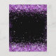 Eine moderne, stilvolle und glamouröse Einladung zu einer Quinceañera, 15. Geburtstagsfeier. Ein schwarzer Hintergrund mit lila Imitaten Glitzer Staub. Der Name ist mit einem modernen handgeschriebenen Stilskript geschrieben. Personalisieren Sie Ihre Party-Daten und fügen Sie sie hinzu.
