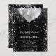 Ein stilvoller schwarzer Hintergrund. Dekoriert mit Imitaten silbernen Glitzer und Ballons. Personalisieren und fügen Sie Namen, Alter und Party Details hinzu. Der Name wird mit einem handgeschriebenen Stilskript geschrieben