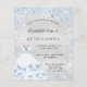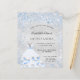 Für eine elegante Quinceañera, 15. Ein Imitat silber metallisch aussehender Hintergrund. Dekoriert mit blauen Imitaten Glitzer Staub und ein Kleid für ein winterliches wunderschönes Party. Personalisieren und fügen Sie Namen, Alter und Party Details hinzu. Der Name wird mit einem handgeschriebenen Stilskript geschrieben