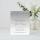 Diese trendige Quinceañera Einladung verfügt über eine funkelnd silberne Imitat Glitzer Tropfen Rand und ombre Hintergrund. Das Wort "Quinceañera" und der Name des Ehrengast erscheinen in lässiger Grauschrift. Das gleiche silberne Glitzer Tropfen Design erscheint auf der Rückseite.