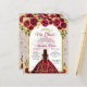Eleganter goldener Bogen mit blumengeschmücktem Prinzessenkleid für die 15. Geburtstags-Quinceanera-Einladung.