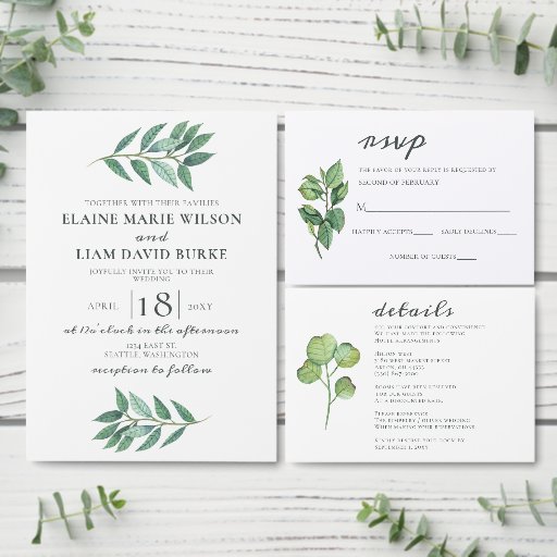 Budget Greenery Hochzeitseinladungen mit schönem Blattmuster zurück