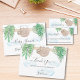 kinderduschegesichtsduschetropische blätteraquarellgrünes blattwerkkinderdusche mit kinderkartetürkisfarbene wolkengeschlechtsneutrale babyduscheniedliche whimsicallächelndes tier