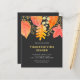Diese preiswerte Erntedank Dinner Einladung ist mit Aquarellfarben-Herbstlauben in Herbstfarben auf dunklem Hintergrund dekoriert. Einfach anpassbar. Original Wasserfarbe © Michele Davies.