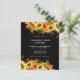 Sonnenblume Berry Erntedank Dinner Black Einladung. Ein Preis SMALLER 4,5" x 5,6" Alternative. Erhältlich in einem SEMI-GLOSS 110 lb CARD STOCK, der die Standardoption (dicker für Einladungen) ist, ODER einem SATIN FINISH 80 lb THINNER PAPER STOCK (ideal für Gehäuse). Umschläge sind optional und etwas größer als die Kartengröße. Eine schöne Wildblumen Blumendesign in Herbstfarben, um Ihre Freunde und Familie zu Ihrem Erntedank Dinner Party einladen. Die anspruchsvollen Botanicals schmücken Oben und Unterseite, und leicht personalisieren den Text in Weiß vor einem klassischen schwarzen Hintergrund.