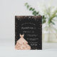 Eine moderne, stilvolle und glamouröse Einladung zu einer Sweet 16. Geburtstagsfeier. Ein schicker schwarzer Hintergrund mit Rose Gold Imitat Glitzer und ein Kleid. Der Name ist mit einem modernen handgeschriebenen Stilskript geschrieben. Personalisieren Sie Ihre Party-Daten und fügen Sie sie hinzu.