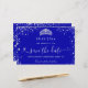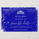 Eine gmädchenhafte und trendige Save the Date-Karte für eine Sweet 16, 16. Geburtstagsfeier. Ein königsblauer Hintergrund. Dekoriert mit Imitaten silbernen Glitzer Staub und ein Tiara, Krone. Der Text: Save the Date ist mit einem großen angesagten, handgeschriebenen Stilskript geschrieben.