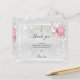 Eine schlichte und elegante Dankkarte mit Foto. Ein Imitat silber metallisch aussehender Hintergrund, ein weißer Rahmen, Imitate Glitzer Staub, rosa Rosen, Florale. Ein goldenes Kreuz. Personalisieren und fügen Sie ein Dankeschön Note, Foto der Babys Mädchen und Name. Schwarzer Text.