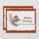 Ein niedlich rostgraues Winterrobin sitzt auf einem Zweig aus weißen und grünen Blätter auf einem schneeweißen, deckelförmigen Papier-Hintergrund. Das Design selbst wird auf einer warmen Rostfarbe überlagert, die von den Federn des Vogels gezeichnet wird. Der Beispieltext vor unserer neuen Adresse Weihnachtskarte lautet "Feiertagsgrüße von unserer neuen Zuhause". Dieser Text und der gesamte Text auf der Kartenrückseite lassen sich über die Personalisierungsvorlage leicht überarbeiten - oder zur Handschrift löschen.