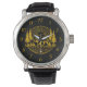 Uhr, Vintage Männeruhr mit schwarzem Lederarmband