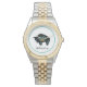 Diese stilvolle klassische Herrenduhr in zwei Tönen wird mit einem nativen Kunstdruck eines Büffels gezeigt. Passen Sie dieses Objekt an oder kaufen Sie, wie es ist. Börsenbild vecteezy.com
