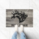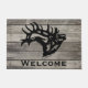 Personalisieren Sie diese einzigartige "One of a Kind" Bull Elk Door Mat! Es verfügt über eine majestätische Bugling Bull Elk Black Silhouette..auf einem grauen Holzhintergrund! Original Kunstmalerei des Künstlers Kerry Miller.